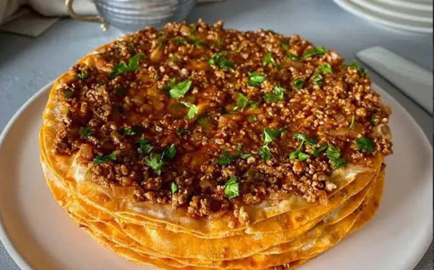 "Şebit" denilen 11 kat ince hamurun kıymalı harç ve sarımsaklı yoğurtla buluşması.