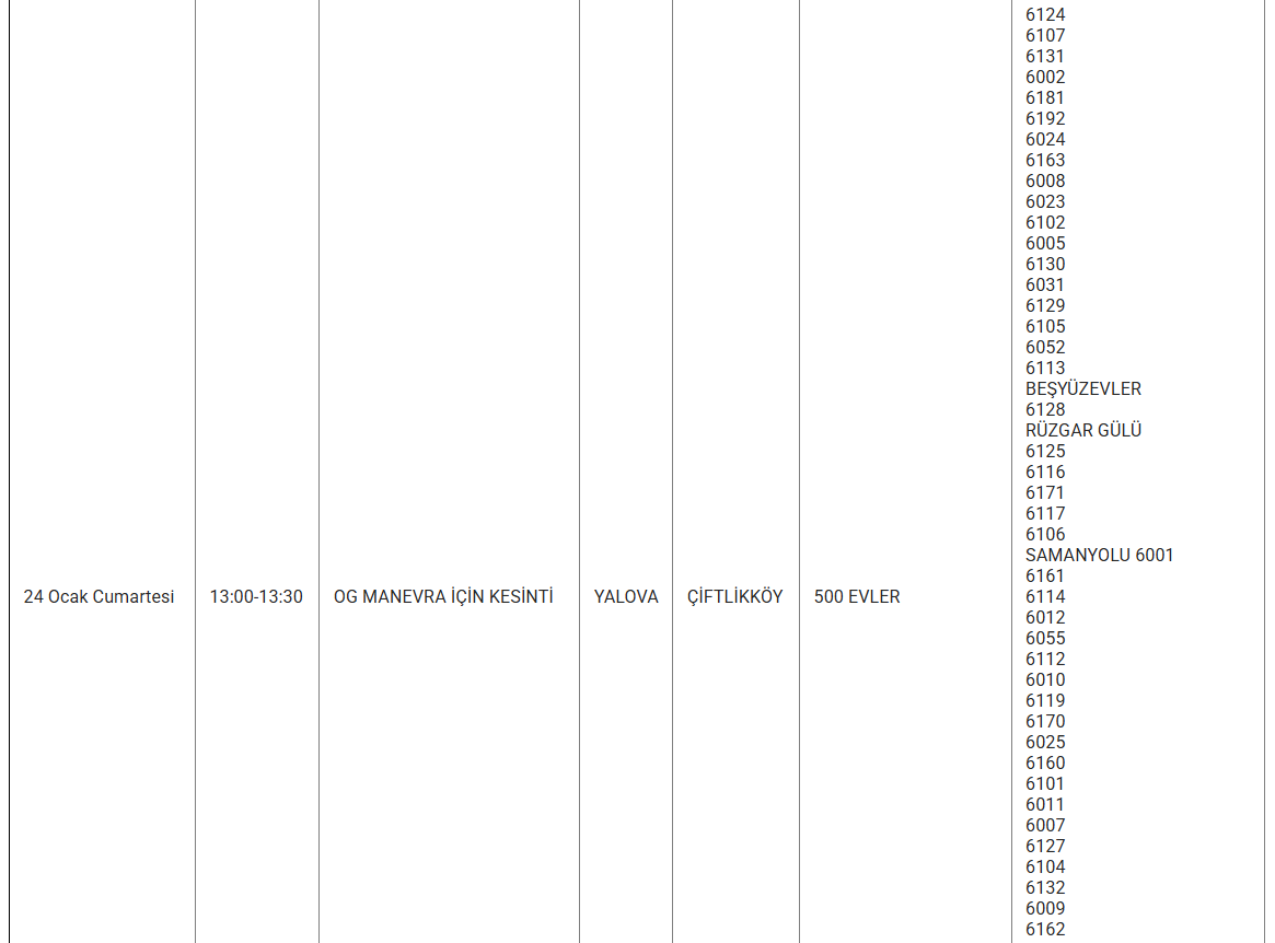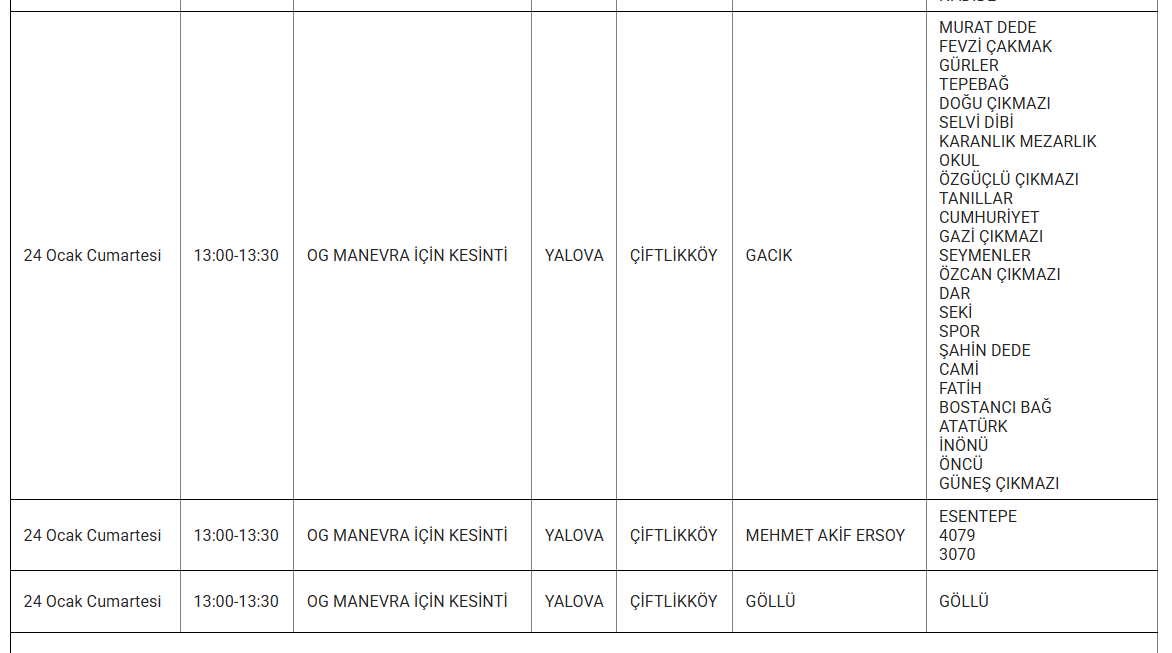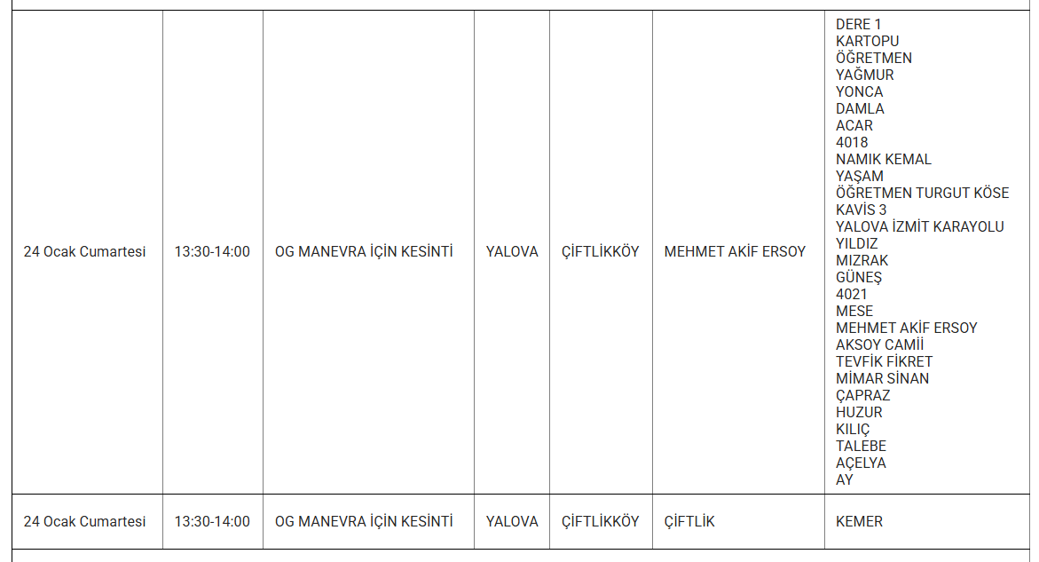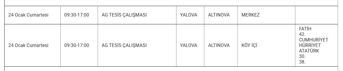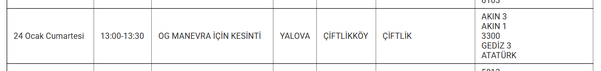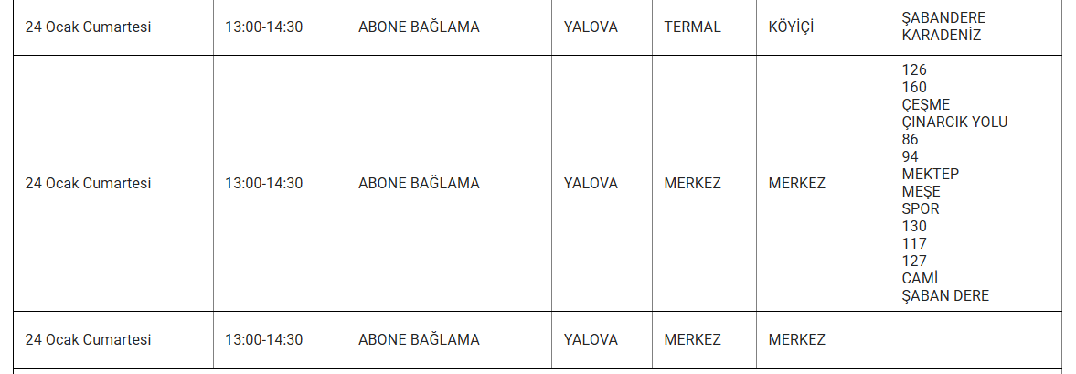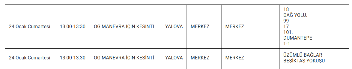 YALOVA’DA 24 OCAK KESİNTİ UYARISI