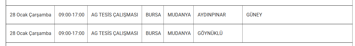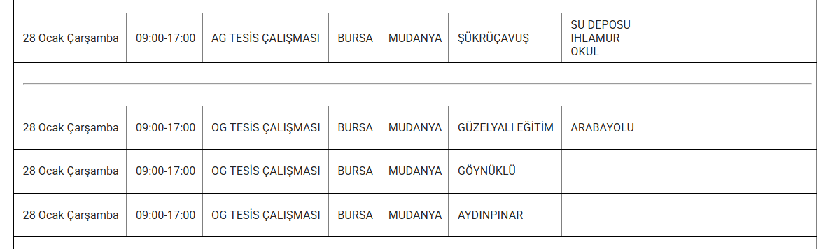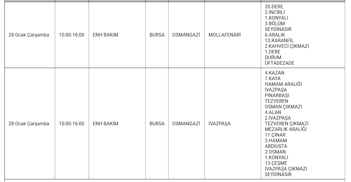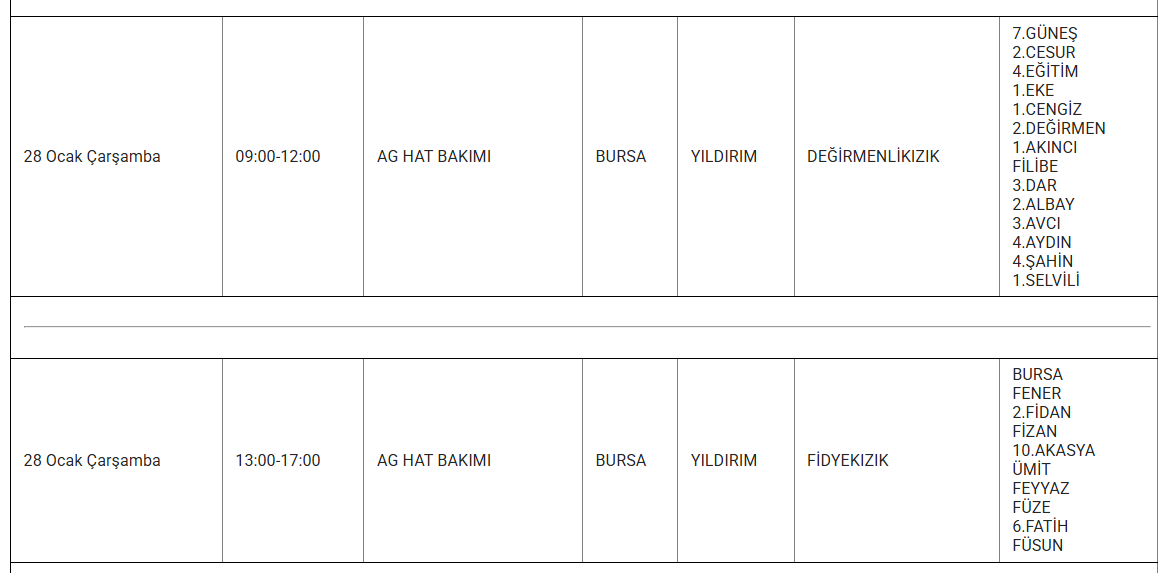 Vatandaşlar, elektriklerin ne zaman geleceğini ve kesintinin ne kadar süreceğini merak ediyor. Bursa'da kesinti yaşanan ilçelerle ilgili detaylı bilgiye, ilgili kurumların resmi internet sitelerinden ya da ALO 186 çağrı merkezinden ulaşılabiliyor.