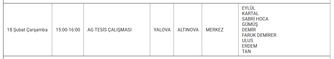 UEDAŞ Yalova'da yaşanacak elektrik kesintilerini önceden duyurmaktadır. UEDAŞ'ın uyardığı ilçelerde yaşana elektrik kesintilerinin saat kaça kadar devam edeceğini bildirmesiyle olası olumsuzlukların önüne geçilebilir. 18 Şubat günü hangi ilçelerde elektrik kesilecek?