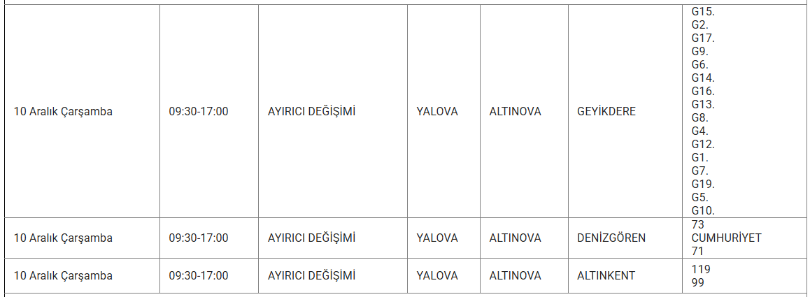 Ayrıca eskiyen elektrik hatları veya trafo arızaları da kesintilere yol açabiliyor. Uludağ elektrik gibi kuruluşlarda bu sorunları en aza indirmek için altyapı yenileme çalışmalarını sürdürdüğünü duyurdu. Işte 10 Aralık günü Yalova'da planlı bakım ve onarım çalışmaları kapsamında elektrik kesintisi yaşanacak ilçe ve mahalleler..