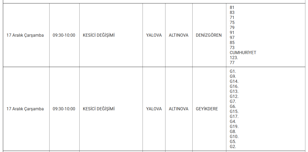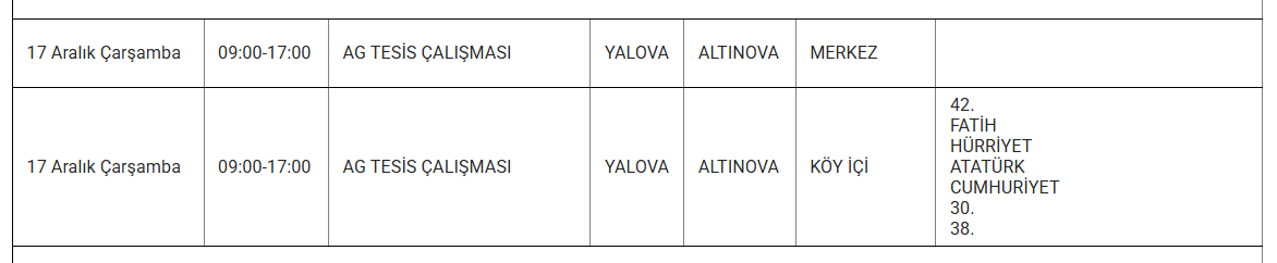 Ayrıca eskiyen elektrik hatları veya trafo arızaları da kesintilere yol açabiliyor. Uludağ elektrik gibi kuruluşlarda bu sorunları en aza indirmek için altyapı yenileme çalışmalarını sürdürdüğünü duyurdu. Işte 17 Aralık günü Yalova'da planlı bakım ve onarım çalışmaları kapsamında elektrik kesintisi yaşanacak ilçe ve mahalleler..