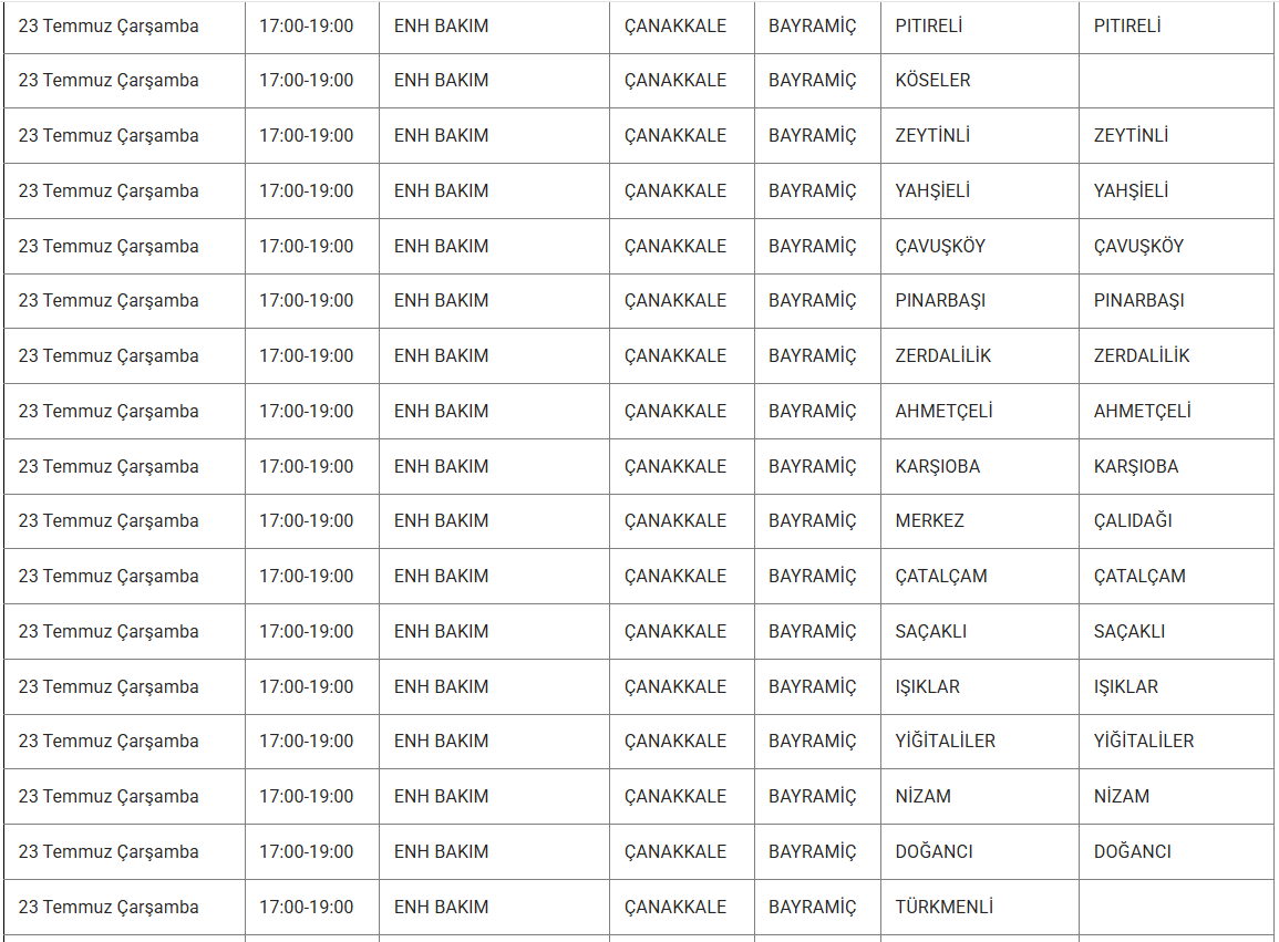 Çanakkale’de 23 Temmuz 2025 günü, Uludağ Elektrik Dağıtım A.Ş. tarafından yürütülecek bakım, onarım ve şebeke yenileme çalışmaları kapsamında bazı mahallelerde elektrik kesintisi uygulanacak. Uedaş, vatandaşların kesintilere karşı hazırlıklı olmaları ve günlük planlarını buna göre yapmaları gerektiğini belirtti. Kesintilerin sabah erken saatlerde başlayıp gün içerisinde farklı zaman dilimlerinde gerçekleşeceği öğrenildi. İşte 23 Temmuz Çanakkale’de elektrik kesintisinin yaşanacağı ilçeler ve detaylar…