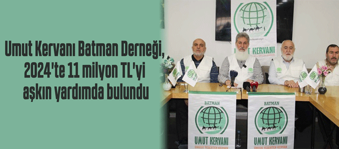 Yurt içi ve yurt dışında toplamda 11 milyon 944 bin 427 TL değerinde yardım yapıldığını aktaran Teymur, "Batman Umut Kervanı olarak elimizden geldiğince hayırsever kardeşlerimizden gelen yardımları dünyanın dört bir yanındaki kardeşlerimize ulaştıracağız. Zor durumda olan muhtaçlara karşı sessiz kalmayarak yardıma muhtaç insanlara yardım eli uzatmaya, yaralarına merhem olacak her türlü gayreti sarf etmeye devam edeceğiz. Evrensel kardeşlik bilinciyle, dünyanın her yerinde hak ve hakikatin; adalet ve iyiliğin; insanca yaşamanın önündeki engelleri kaldırmak için, din, dil, ırk ve mezhebine bakmaksızın her nerede olursa olsun zulme uğramış ya da başka sebeple muhtaç duruma düşmüş insanlara ihtiyaç duydukları iyilik ve insani yardımı ulaştırmaya çalışacağız." diye konuştu.