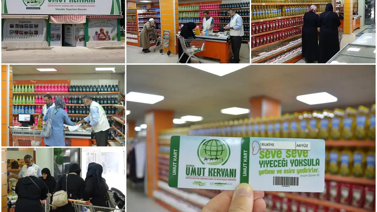 Bursa Umut Kervanı Derneği Başkan Yardımcısı Sadık Tekin, projeye ilişkin yaptığı açıklamada "Umut Kervanı olarak geçen ay açılışını yaptığımız sosyal marketimiz faaliyetlerine başladı. Bu ay, ilk yardım faaliyeti olarak ihtiyaç sahibi 165 aileye gıda kartlarını verdik. Ailelerimiz bu kartlarla kırmızı etten giyime, temizlik ürünlerinden ayakkabıya kadar birçok ihtiyacını karşıladı" dedi.