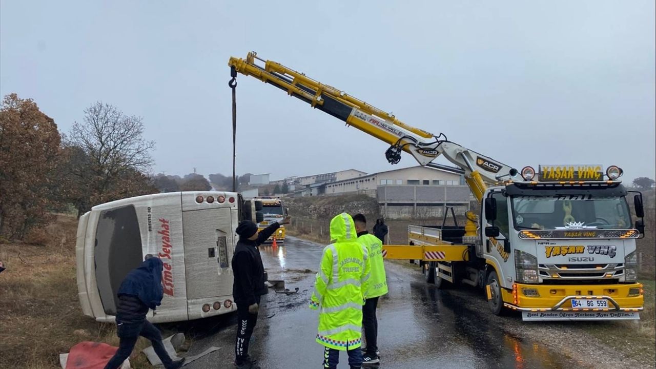 Uşak-Eşme arasında yolcu taşıyan S.K. (48) yönetimindeki 64 SK 066 plakalı midibüs, Akkeçili köyü yakınlarında sürücüsünün direksiyon hakimiyetini kaybetmesi sonucu devrildi.