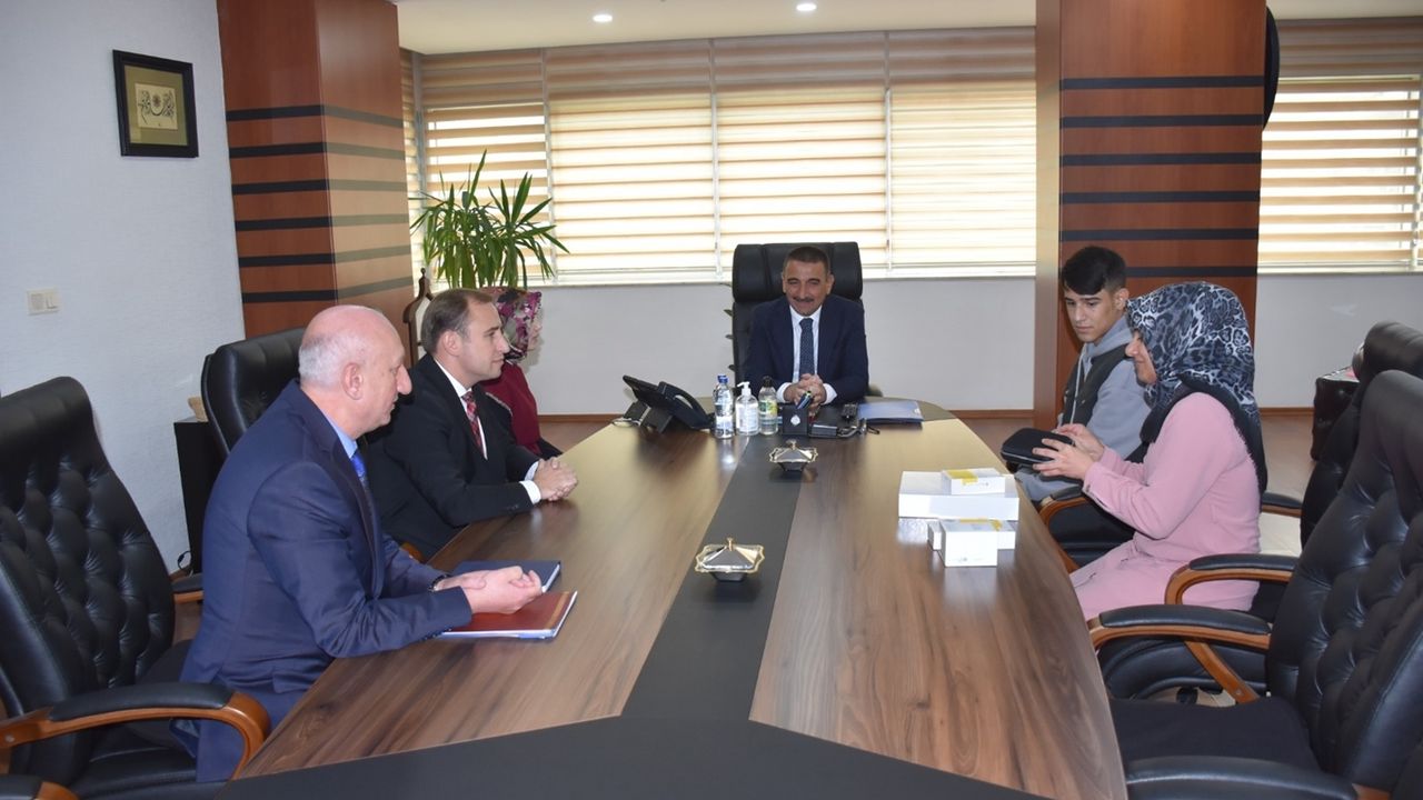 Vali Hacıbektaşoğlu tarafından ağırlanan işitme engelli 8. sınıf öğrencisi 15 yaşındaki Ramazan Aydın ve Annesi Süreyya Aydın, Hacıbektaşoğlu'na desteklerinden ötürü teşekkür etti.