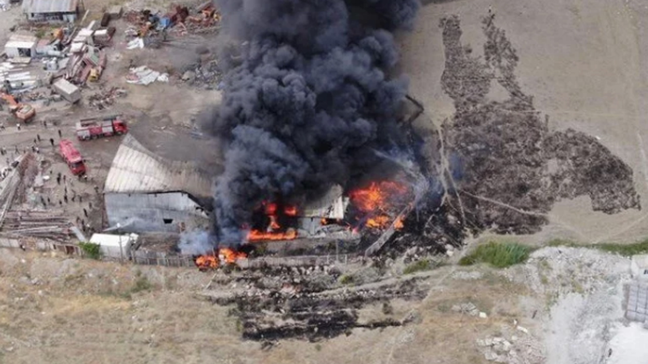Van'ın Tuşba ilçesinde Hurdacılar Sanayi Sitesi'ndeki atık plastik malzemelerinin toplandığı geri dönüşüm tesisinde henüz belirlenemeyen nedenle yangın çıktı.