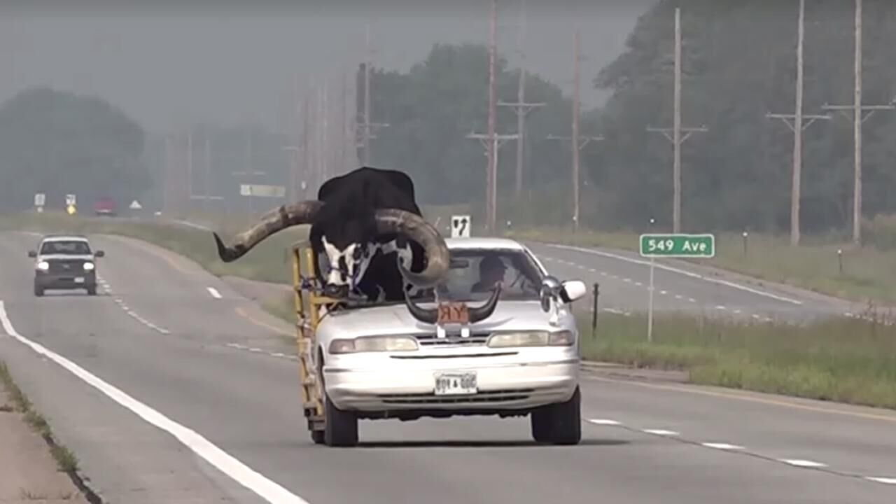 ABD'de ilginç olay: Arabanın içinde boğa taşıdı
