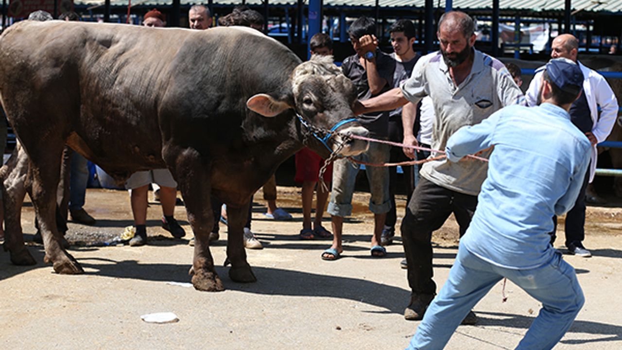 Erzurum`un İspir ilçesinde yetiştirdiği 1 ton 250 kilogram ağırlığındaki "Aslan Parçası" adlı boğayı satmak için Bursa`ya getiren Şaban Ali Tekin, pazarın en büyük kurbanlığı olan boğaya 23 bin lira istiyor.