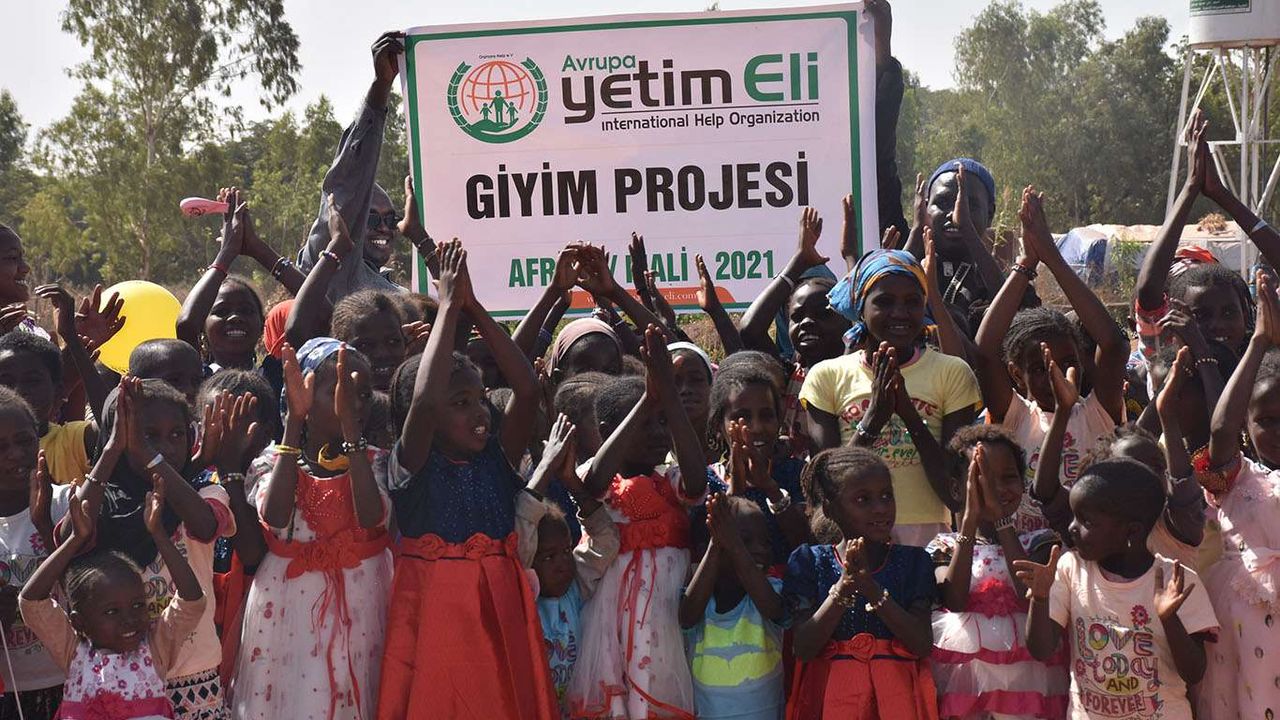 Uluslararası Yardım Kuruluşu Avrupa Yetim Eli, Batı Afrika ülkelerinden Mali'de iç karışıklık nedeniyle başkent Bamako'ya göç eden ihtiyaç sahibi çocuklara giysi yardımında bulundu.
