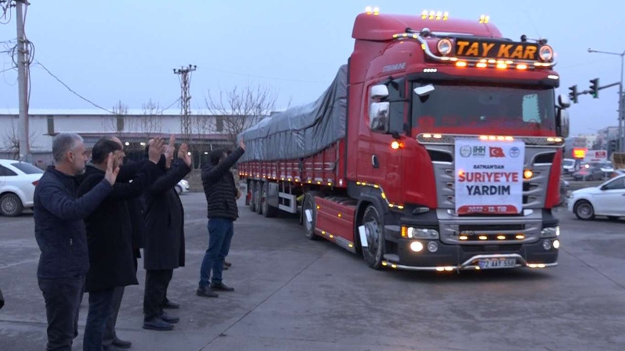 Batman'daki sivil toplum kuruluşları tarafından hazırlanan, içinde un, barınma malzemesi ve kışlık giyim eşyasının bulunduğu bir tır insani yardım malzemesi insanlık dramının yaşandığı İdlib'e uğurlandı.