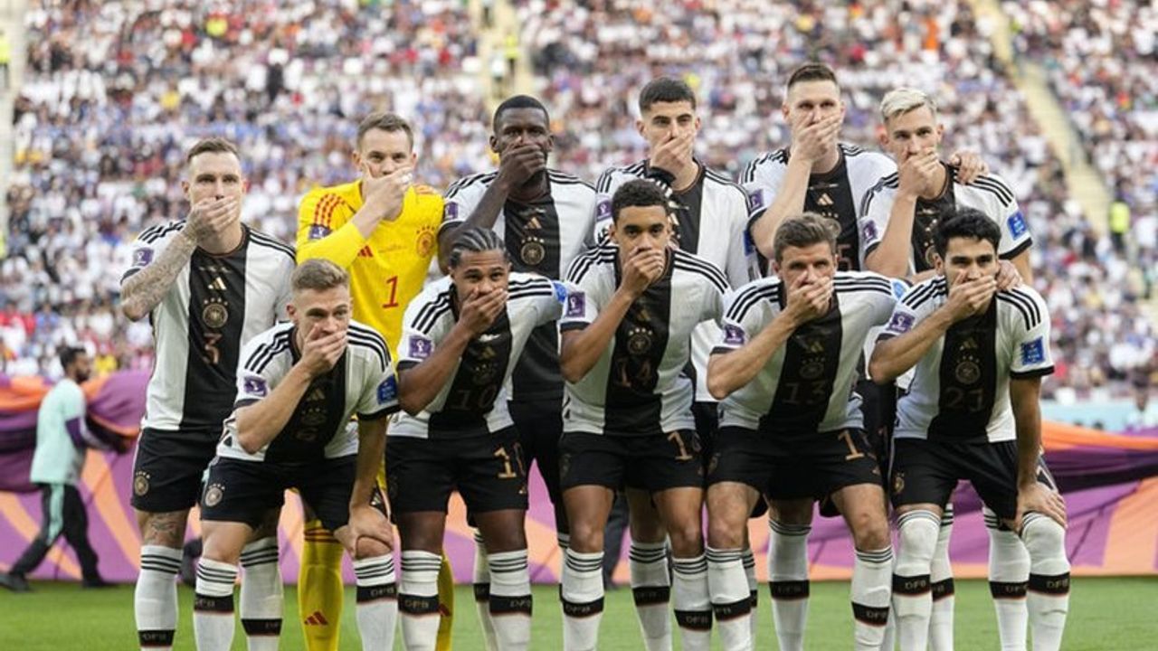 Alman Milli Takımı, Dünya Kupasına geldiğinde amacı spor yapmak değildi. Küreselcilerin ifsat projesine koşbaşlığı yapmak isteyen Almanya LGBT'ye destek için 'One Love' kol bandı takmak isteyince Katar’ın da bu konudaki net tavrı nedeniyle FİFA bu ahlaksızlığı yapamazsın demişti. Almanya oyuncuları ise bu durumu protesto için ağzını kapatmıştı. Şimdi ise Katarlılar ağzını kapatıyor. Ama biraz farklı tabi