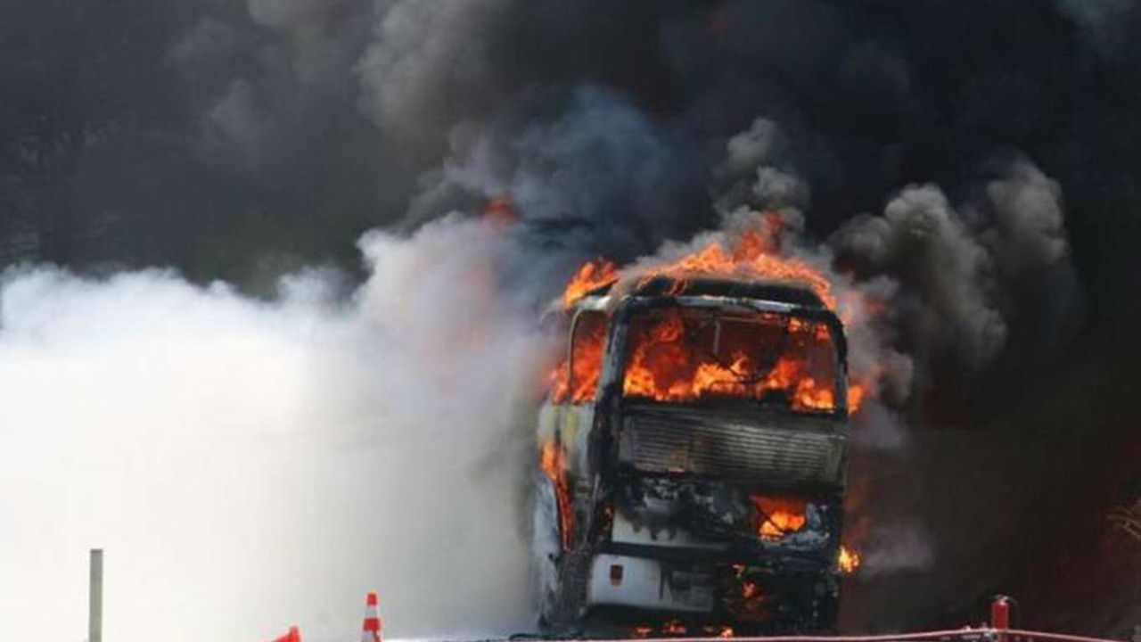 Haber Bulgaristan'da otobüs alev aldı: 12'si çocuk 46 ölü Başkent Sofya'nın batısında yaşanan kazanın ardından alev alarak yanan yolcu otobüsündeki 12'si çocuk 46 kişi hayatını kaybetti. 23.11.2021 - 11:35 23.11.2021 - 11:35 Abone Ol Gelişmelerden haberdar olmak istiyor musunuz? Google News’te Doğruhaber sitemize abone olun. Abone Ol