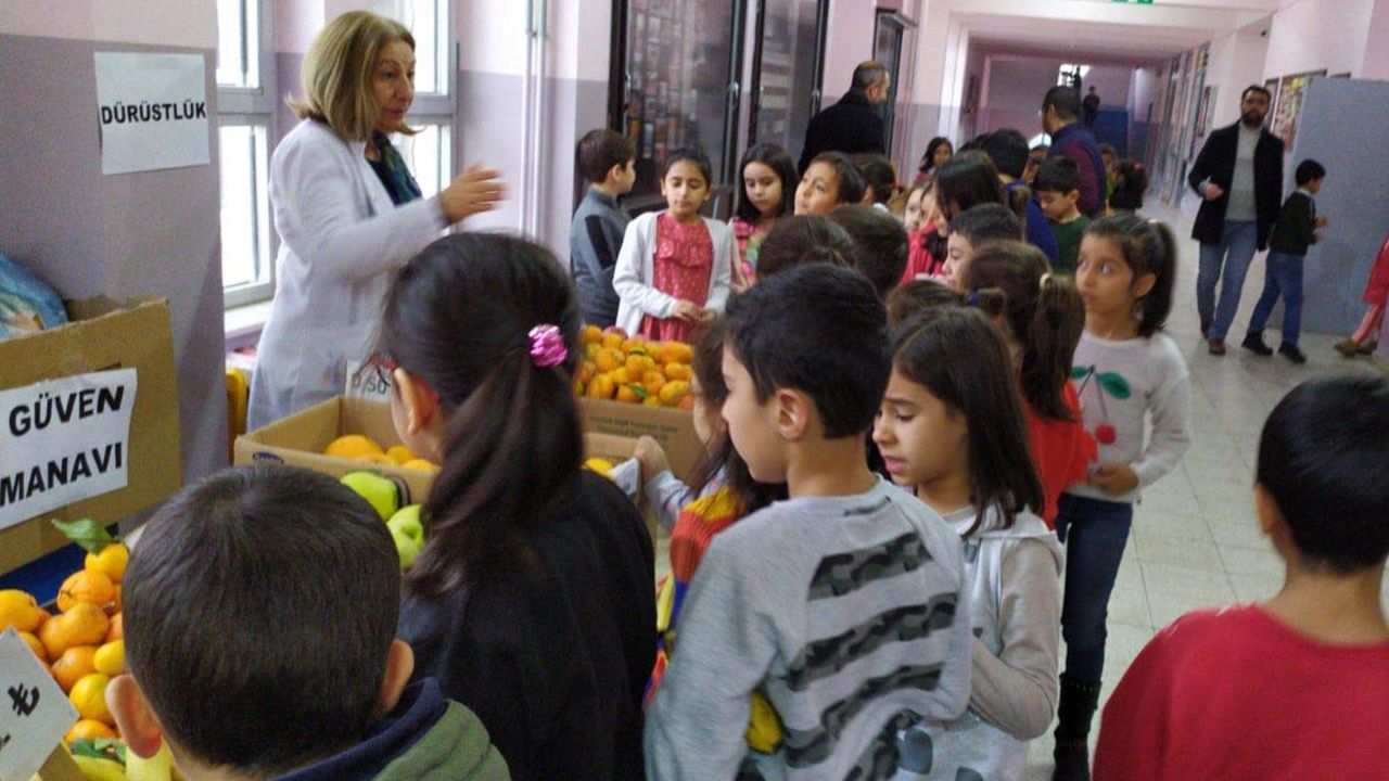 Şanlıurfa’nın Siverek ilçesindeki Mehmetçik İlkokulu öğrencileri, okul içerisinde kurulan ve tezgâhtarı olmayan “Güven Manavı”ndan meyve alıp, parasını kumbaraya atarak doğruluğu ve dürüstlüğü öğreniyorlar.