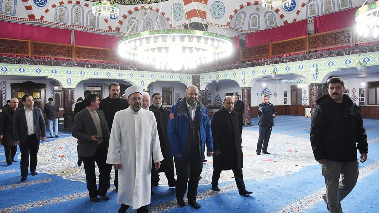 Diyanet İşleri Başkanı Erbaş, depremde hasar gören camide incelemelerde bulundu
