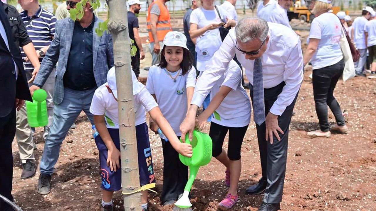 Diyarbakır Valisi ve Belediye Başkan Vekili Ali İhsan Su, 1-7 Haziran Türkiye Çevre Haftası etkinlikleri kapsamında farkındalık oluşturmak amacıyla çocuklarla fidan dikti.