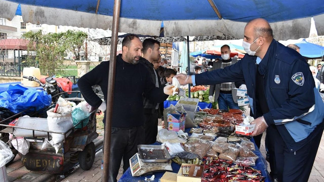 Bağlar Belediyesi, Corona virüs önlemleri kapsamında semt pazarlarında, esnaflara ve vatandaşlara eldiven ile maske dağıtarak sık sık uyarılarda bulundu.
