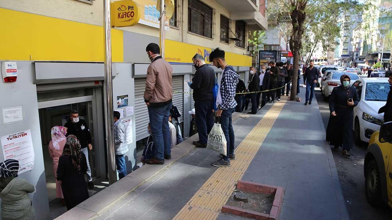 Diyarbakır'da PTT'lerin önünde oluşan kalabalık Covid-19'un bulaşma riskini arttırıyor