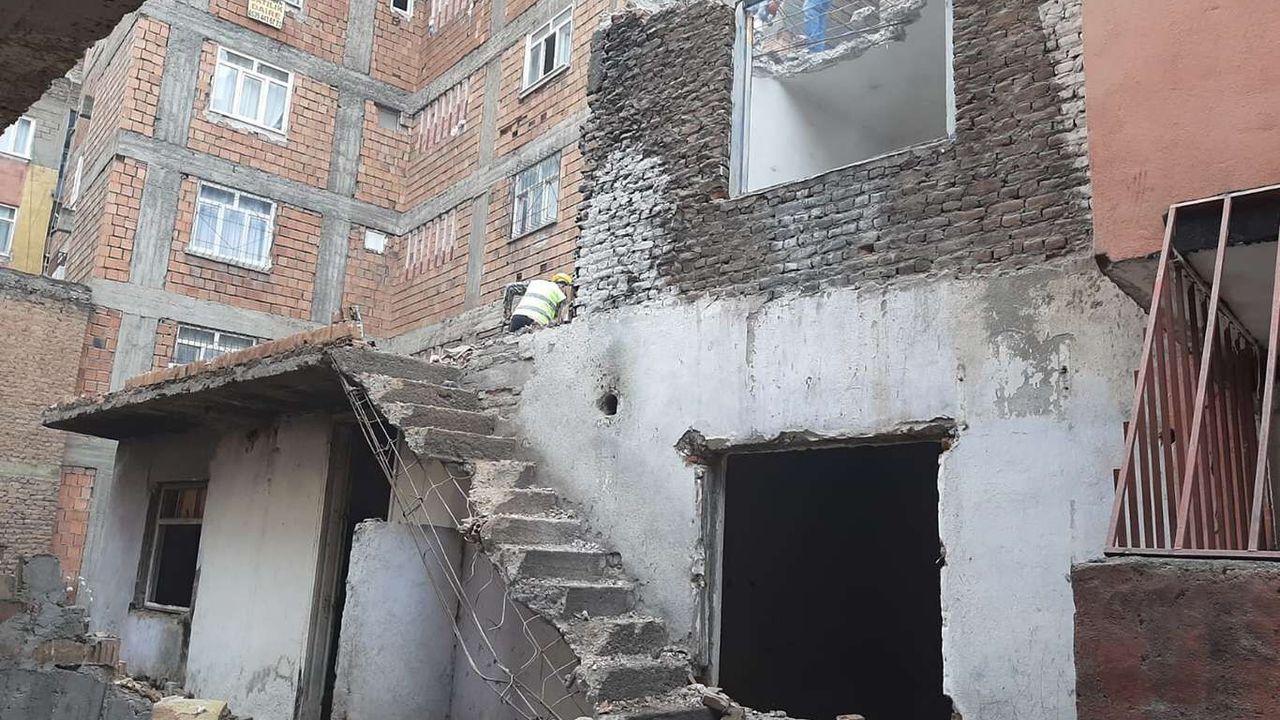 Diyarbakır'da sahipleri tarafından terk edilen metruk bina yıkıldı