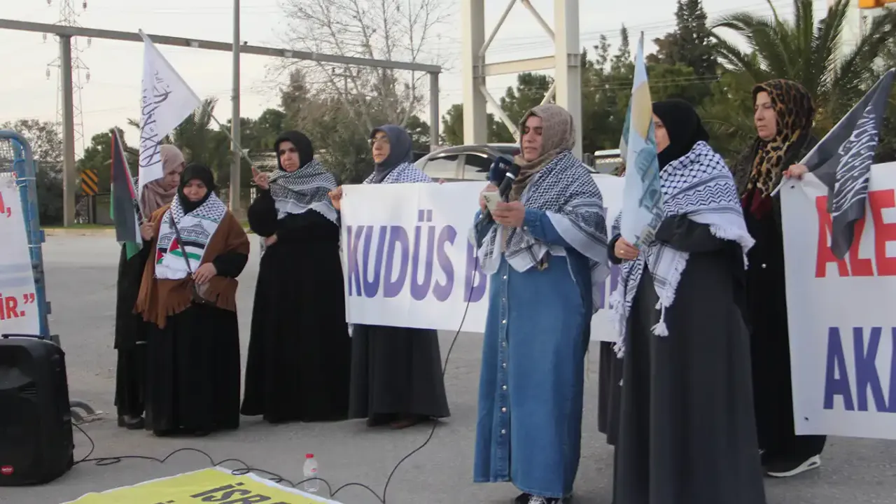 Adana'da bir grup eğitimci kadın, Gazze’ye destek vermek ve işgalcilerin soykırımına karşı protesto düzenlemek amacıyla ABD Konsolosluğu önünde bir araya geldi.