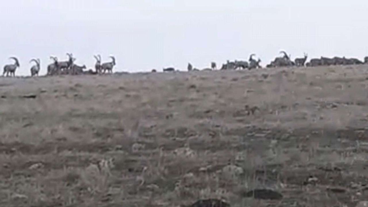 Elazığı'ın Karakoçan ilçesi ile Tunceli sınırındaki kırsal alanda sürü halinde dolaşan dağ keçileri bölgedeki bir köy sakini tarafından cep telefonuyla kayda alındı.
