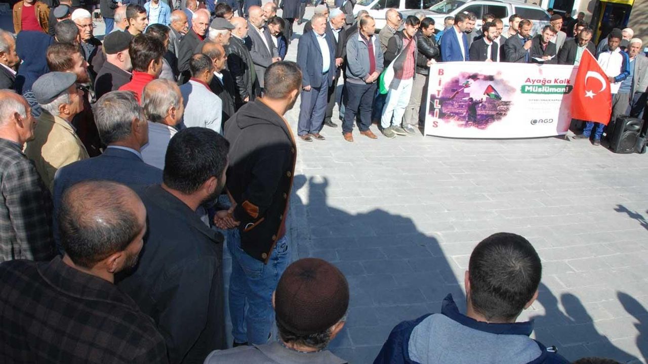 Bitlis'te siyonist terör çetesinin Filistin'deki saldırısında şehid olan İslami Cihad Hareketi'nin komutanlarından Baha Ebu'l Ata ve diğer şehidler için gıyabi cenaze namazı kılınarak, basın açıklaması düzenlendi.