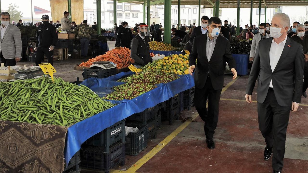 Gaziantep Valisi Davut Gül, Coronavirus (Covid-19) salgınını önleyici tedbir çalışmaları kapsamında kentteki semt pazarlarını ziyaret ederek esnafa ve vatandaşa uyulması gereken kurallar konusunda uyarılarda bulundu.