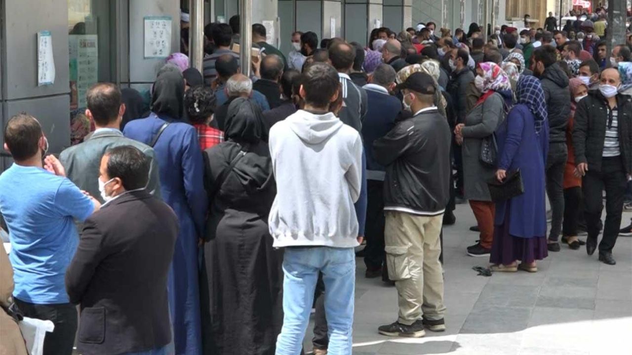 Gaziantep’te sosyal yardım, elektik faturası ve e-devlet şifresi almak için PTT’ye ve çeşitli işlemler için bankaya gelen vatandaşlar, Covid-19’a karşı hiçbir önlem almadan kapı önünde uzun kuyruklar oluştururken kuyruk çilesine halk tepki gösterdi