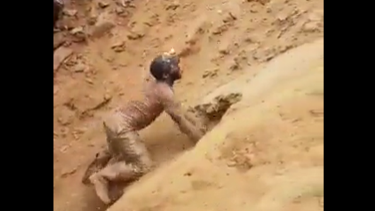 Kongo Demokratik Cumhuriyeti'nde şiddetli yağışların ardından bir altın madeninde göçük meydana geldi. Mahsur kalan madencileri, arkadaşları toprağı kazarak kurtardı.