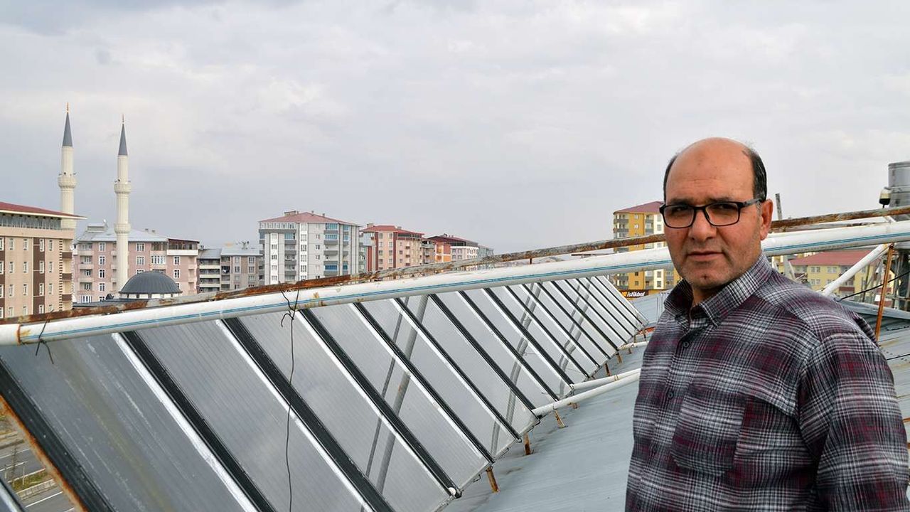 Türkiye'nin soğuk illeri arasında yer alan Ağrı'da ikamet ettiği binanın çatısına kurduğu güneş enerjisi panelleri ile tüm dairelerin yüzde 70'lik ısısını karşılayan vatandaş aynı zamanda 24 saat kesintisiz sıcak su ihtiyaçlarını buradan karşılıyor.