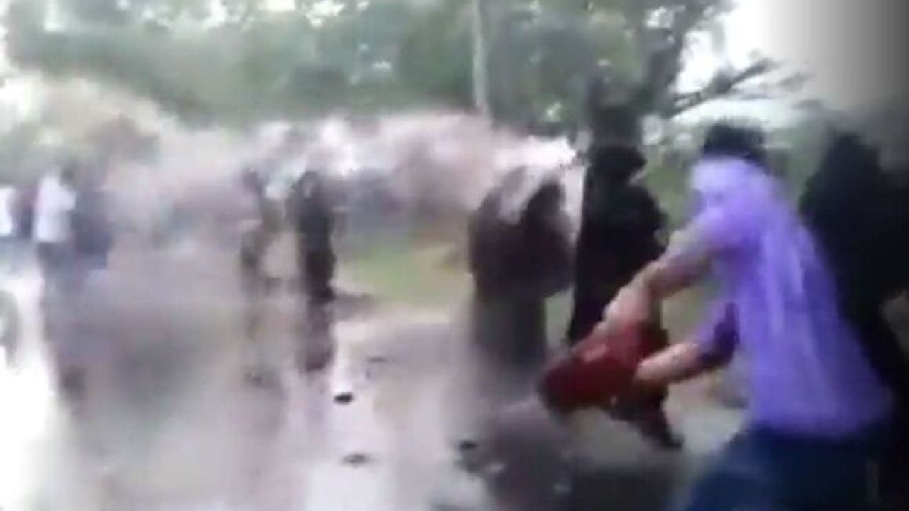 Hindistan'ın Karnataka eyaletinde okullara başörtüsüyle alınmadıkları için protesto yapan Müslüman kız öğrenciler, Hindu faşistlerin saldırılarına maruz kaldı.