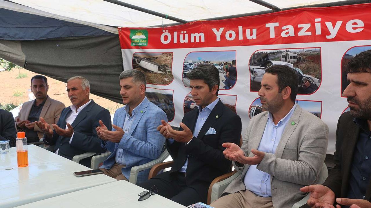 HÜDA PAR Şanlıurfa İl Başkanlığı, Şanlıurfa- Suruç- Birecik kara yolunda yaşanan ölümlü trafik kazalarına dikkat çekmek amacıyla kara yolunda taziye çadırı açtı.