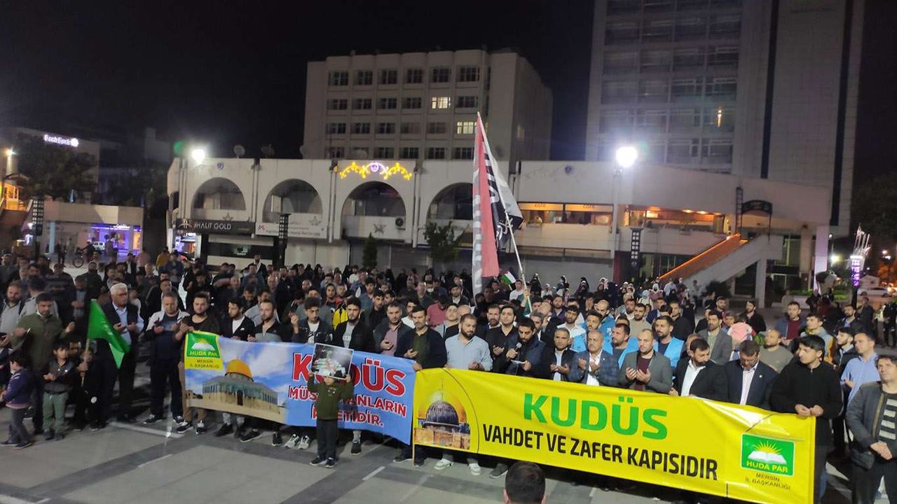 Haber HÜDA PAR Mersin İl Başkanlığından Filistin'e destek HÜDA PAR Mersin İl Başkanlığın, teravih namazını müteakiben yapmış olduğu basın açıklamasıyla Filistin'e destek verdi. 18.04.2022 - 16:05 18.04.2022 - 16:05 Abone Ol Gelişmelerden haberdar olmak istiyor musunuz? Google News’te Doğruhaber sitemize abone olun. Abone Ol