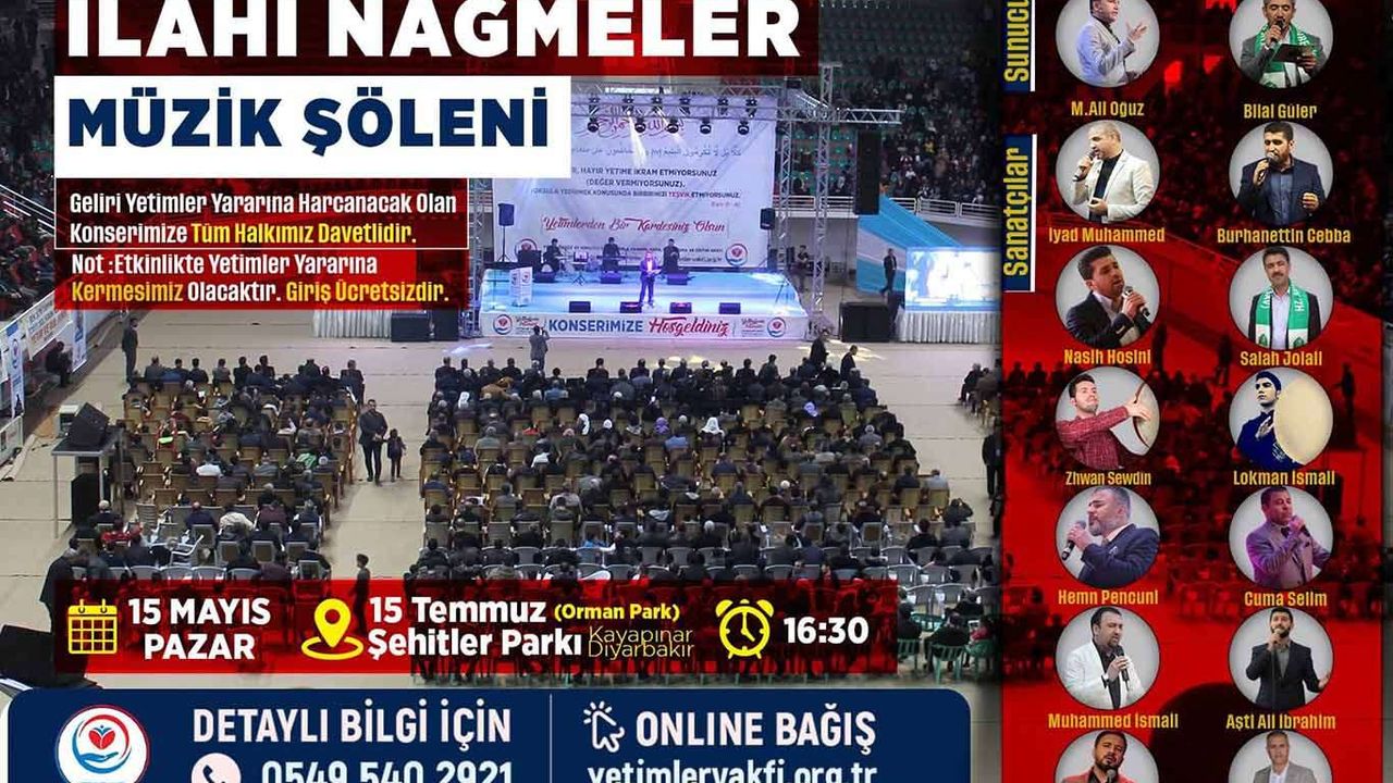 Yetimler Vakfı tarafından 15 Mayıs Pazar günü 15 Temmuz Şehitler Parkı (Orman Park) alanında yetimler yararına düzenleyeceği ilahi ve nağmeler şöleninin detayları belli oldu.