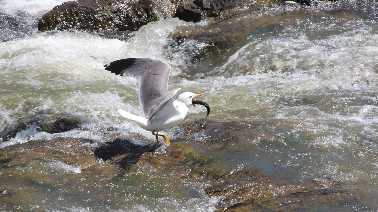 Yılın belli tarihlerinde Van Gölü'nden çıkarak yumurtalarını bırakmak için akarsulara ve derelere akın eden Van Gölü'nün endemik balığı inci kefali, martılara yem oluyor.