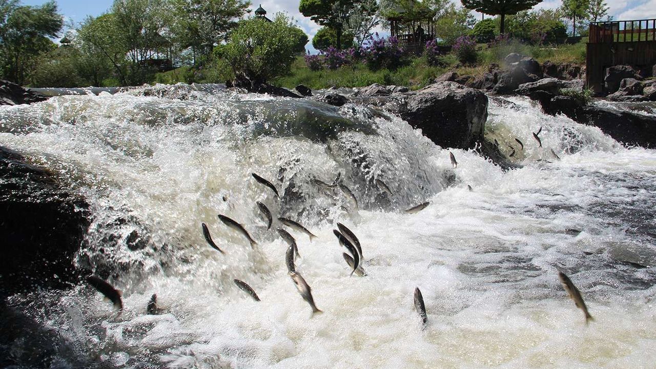 Van Gölü'nde yaşayan ve yılın belli döneminde yumurtalarını bırakmak için tatlı sulara göç eden İnci Kefali, suyun akışının tersine yüzerek karşılaştığı engelleri ise uçarak geçiyor.