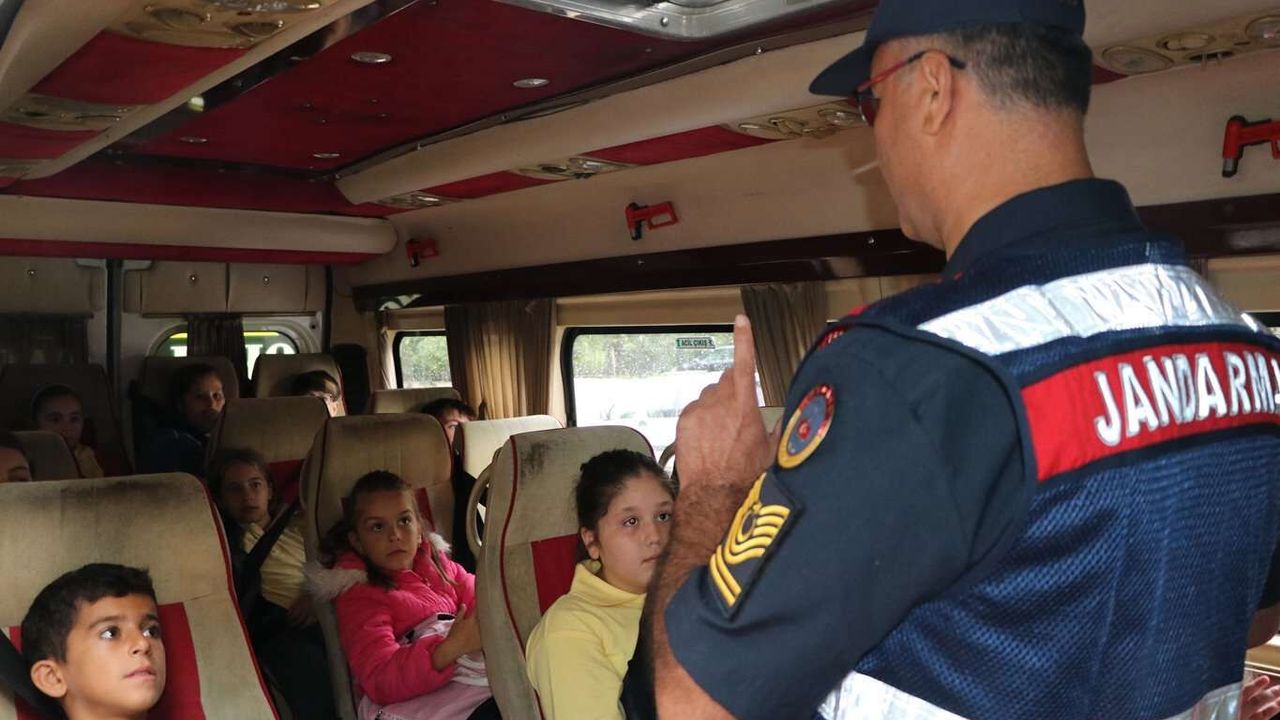 İstanbul İl Jandarma komutanlığı, Sarıyer Kilyos'ta okul servislerine yönelik seyir halinde kurallara uyup uymadığı, okul önlerinde güvenli indirme bindirme ve araç içi güvenliği denetimi yapıldı.