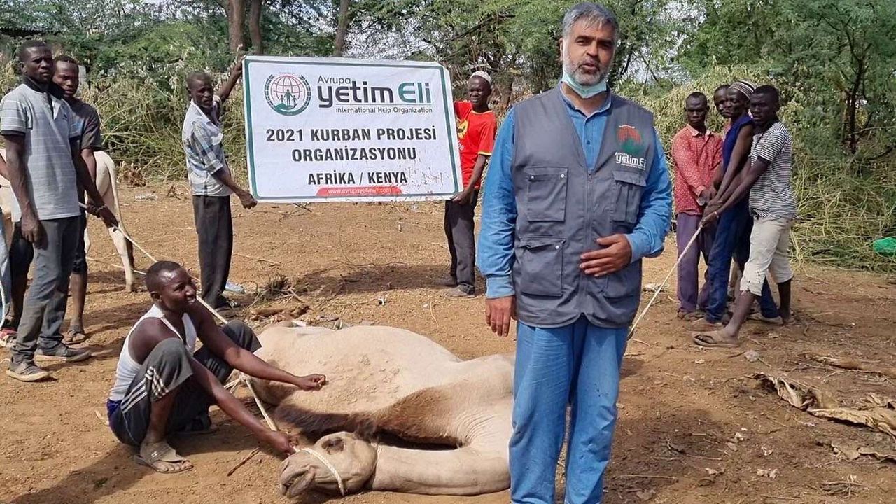 Almanya'nın Köln şehrinde covid-19 hastalığına yakalanarak tedavi gördüğü hastanede vefat eden Avrupa Yetim Eli Köln Temsilcisi Murat Yarmadelen adına Afrika'nın Kenya ülkesinde bir deve kurban kesildi.
