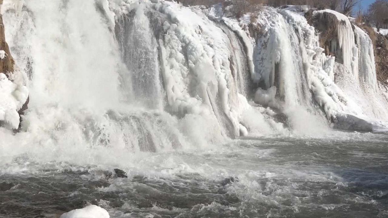 Van'ın Muradiye ilçesinde bulunan ve her mevsim ayrı bir güzellikle ziyaretçileri kendine hayran bırakan Murdiye Şelalesi soğuk havanın etkisi ile kısmen dondu.