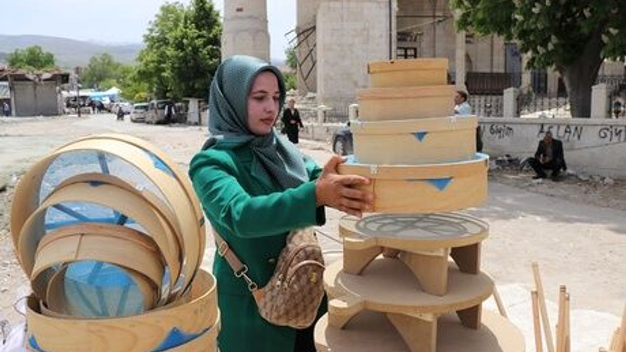 Kahramanmaraş depremlerinde ahşap ürünlerinin bulunduğu dükkânı yıkılan Sevilay Dirican, enkazı kaldırılan iş yerinin bulunduğu noktada ahşap ürünlerini satarak ayakta kalmaya çalışıyor.