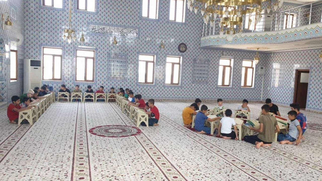 Mardin'in Yeşilli ilçesinde bulunan Ulvaniye Camisindeki cami görevlileri, hayırseverlerin katkılarıyla yaz Kur'an kursuna katılan öğrencilere çeşitli hediyeler verip etkinlikler düzenlediler.