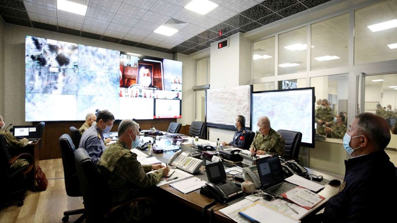 Milli Savunma Bakanı Akar, Kara Kuvvetleri Harekat Merkezi'nden Pençe Şimşek ve Pençe Yıldırım operasyonlarına katılan birlik komutanlarına hitap etti.