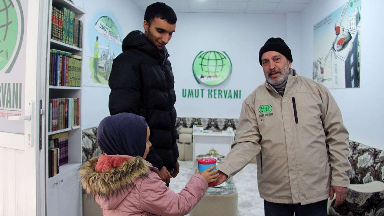 Diyarbakır'da ikamet eden Şehide Böğüç ismindeki minik kız, Suriye'nin İdlib kentinde çetin kış şartları altında zor günler geçiren mağdurlara göndermek üzere kumbarasındaki parayı Umut Kervanı yetkililerine teslim etti.