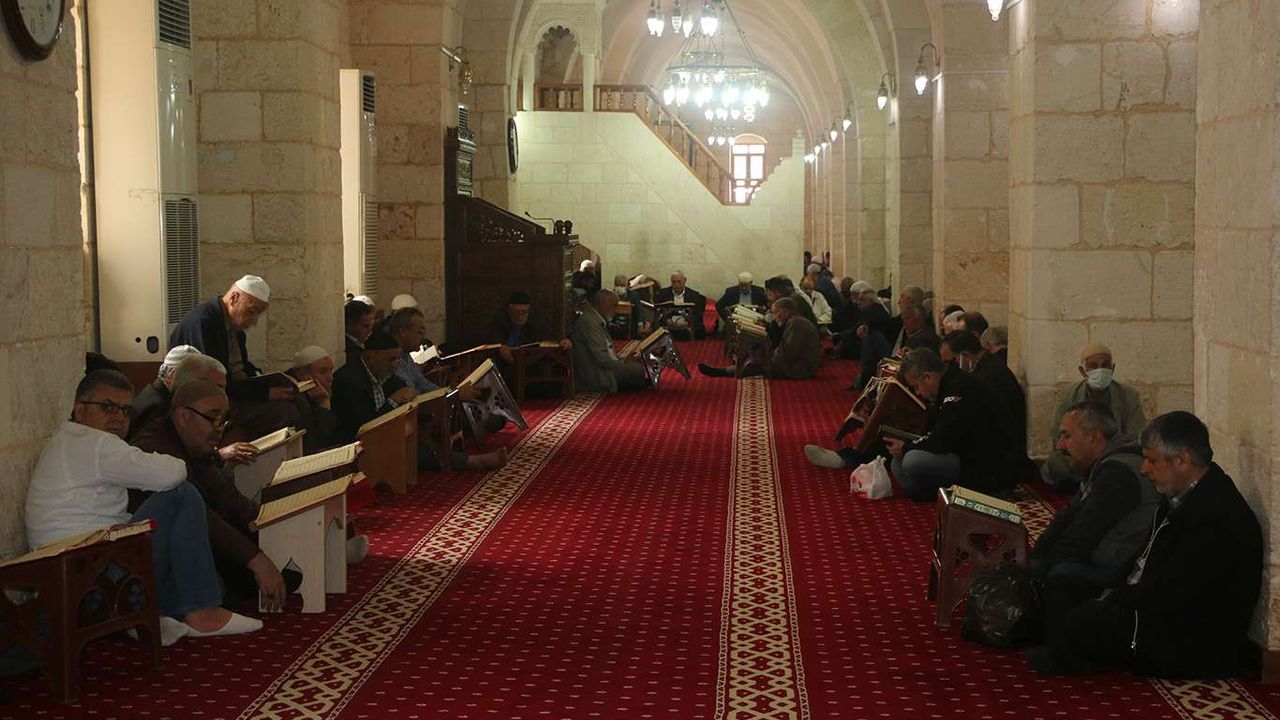 Şanlıurfa'nın tarihi camilerinden olan Ulu Cami'de 4 hafız okuduğu ve cami cemaatinin takip ettiği Kur'an'ı Kerim tilavetiyle "Mukabele" sünneti yaşatılıyor.