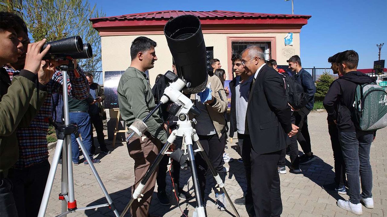 Tatvan Atatürk Anadolu Lisesi’nin bahçesinde, Bitlis Eren Üniversitesi Doktor Öğretim Üyesi Cihan Önen’in astronomi çalışmaları sergilendi. Serginin ardında öğrencilere düzenlenen söyleşiyle öğrenciler bilgilendirildi.