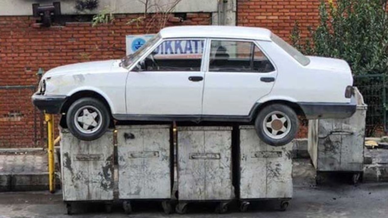 Otomobilin caddeye park edilmesine kızan esnaftan ilginç çözüm: Aracı çöpe attı!
