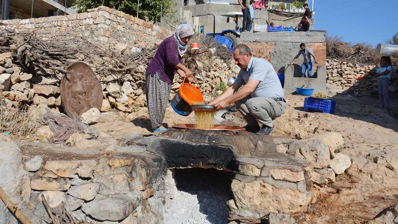 Batman Gercüş ilçesinde yapılan bağ bozumu ile toplanan şire üzümünün pekmez, cevizli sucuk ve pestile dönüşen tatlı yolculuğu geleneksel yöntemlerle sürdürülüyor.