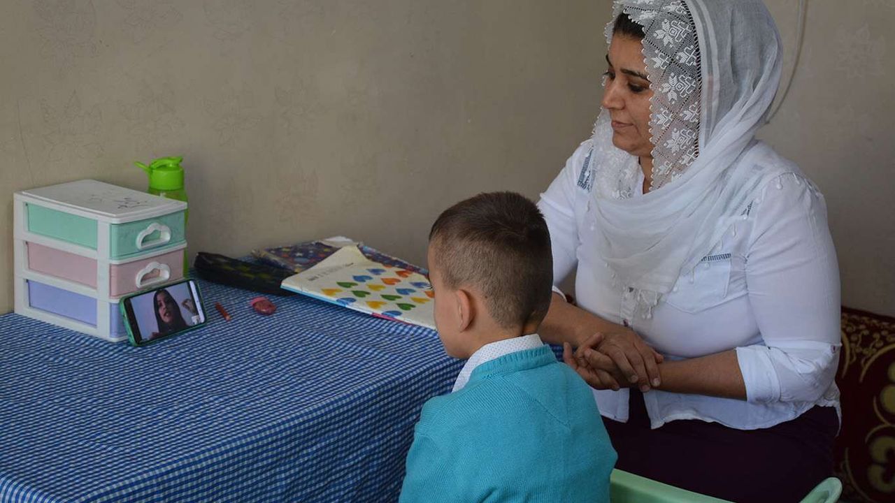 Şırnak’ın Silopi ilçesinde 5 çocuk annesi Saliha Uygur, oğlunun EBA üzerinden canlı derslerine katılıp beraber okuma yazma öğrenerek Covid-19 salgını sürecinde evde kalmayı fırsata çevirdi.