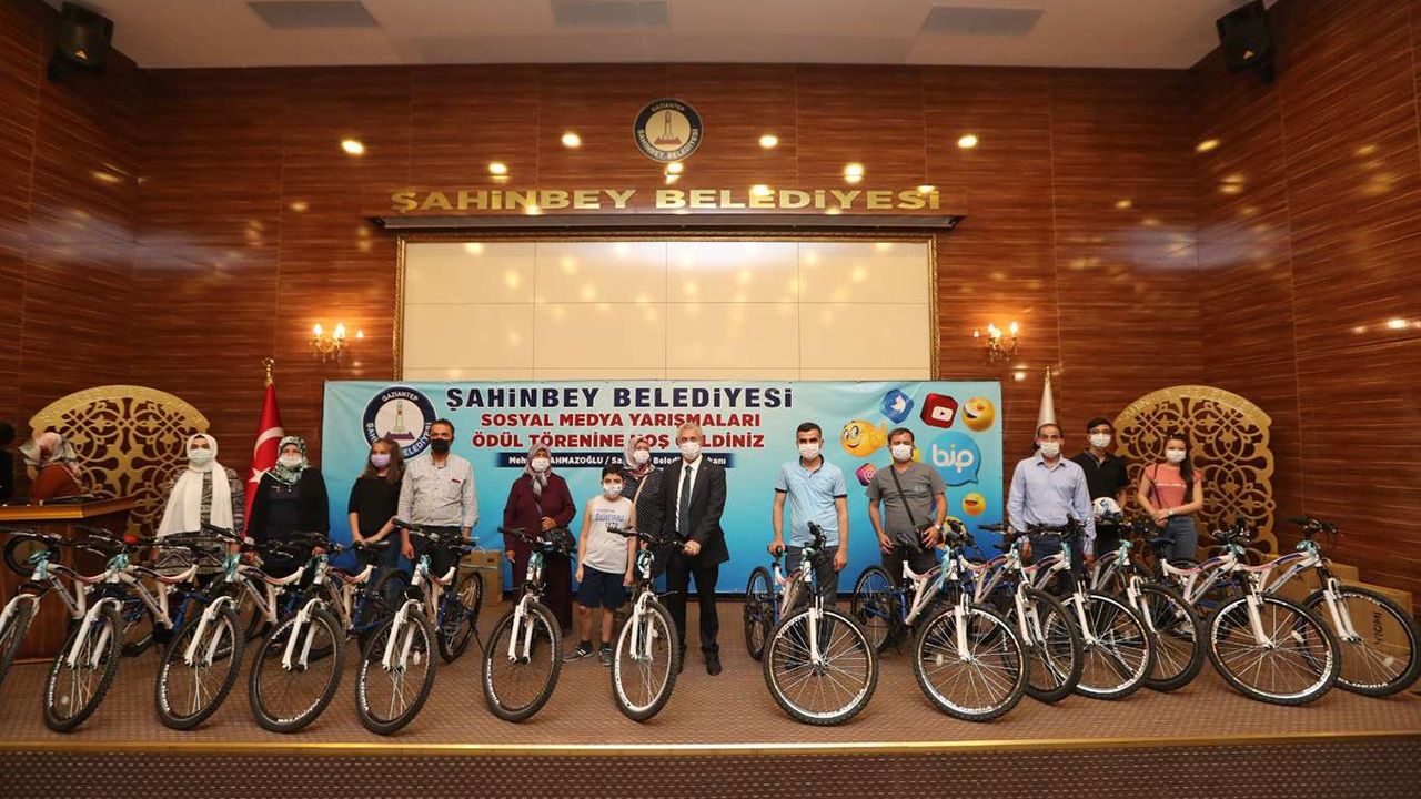 Gaziantep'te Şahinbey Belediyesi tarafından sosyal medya üzerinden sorulan sorulara doğru cevap veren ve çekilen kura ile ödül kazanan vatandaşlara hediyeleri düzenlenen törenle verildi.